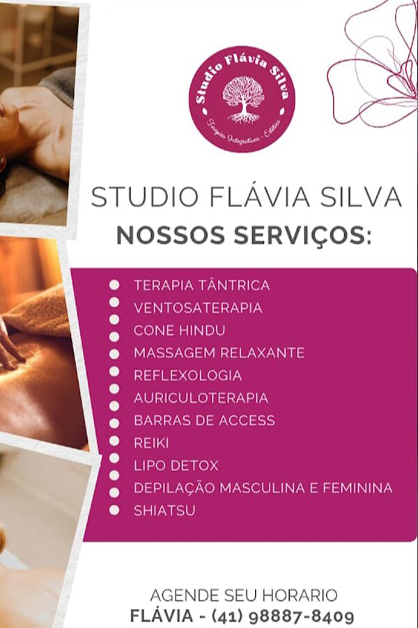 Olá, sou Flávia Silva, terapeuta integrativa e massoterapeuta com uma longa trajetória na promoção do bem-estar. Minha abordagem é centrada em técnicas que visam equilibrar corpo e mente, proporcionando um atendimento personalizado para cada cliente.